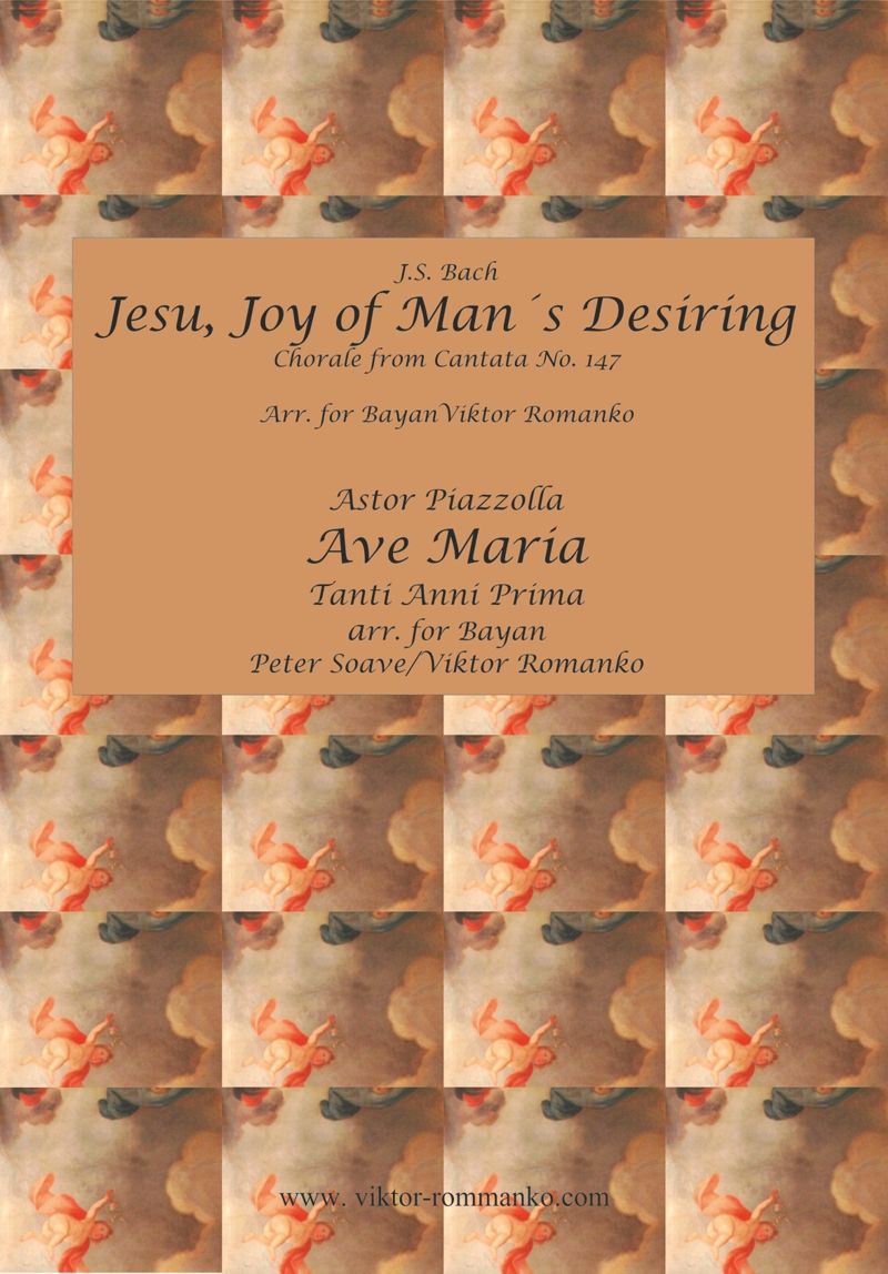 Komplettes Notenheft "Jesu, meine Freude (Jesu, Joy of Man's Desiring" von Johann Sebastian Bach , arr.: Prof. Viktor Romanko "Ave Maria (Tanti Anni Prima)" von Astor Piazzolla, arr.: Peter Soave / Prof. Viktor Romanko 16 Seiten, geheftet arrangiert für Akkordeon/Bajan von Prof. Viktor Romanko!